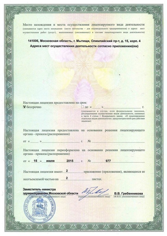 Преимущества: Удобное расположение, недалеко от ж/д станции Мытищи. К решению проблем пациента подходят комплексно, есть возможность сразу сдать анализы, сделать узи диагностику,ведут приём узкие специалисты. Действительно, грамотные специалисты!